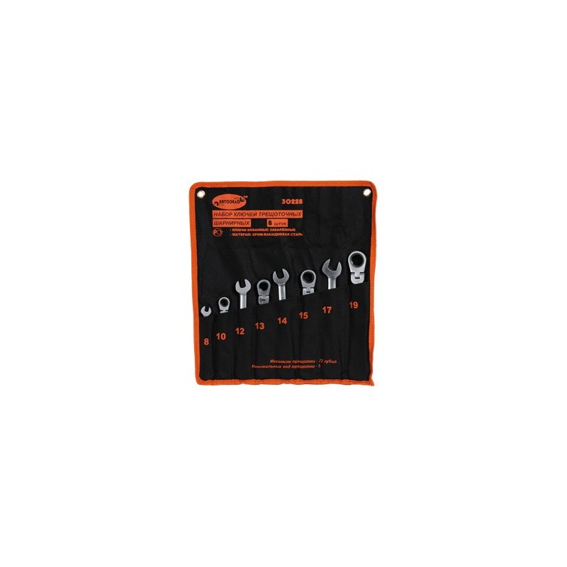 Набор ключей комбинированных трещоточных 6 предметов (8-19) шарнирные в сумке АвтоДело 30228