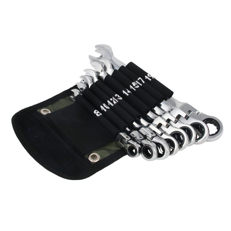 Набор ключей комбинированных трещоточных 8 предметов (8-19) шарнирные 736-210