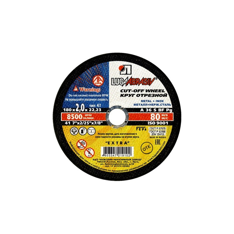 круг отрезной по металлу 180х2,0х22 (Луга)