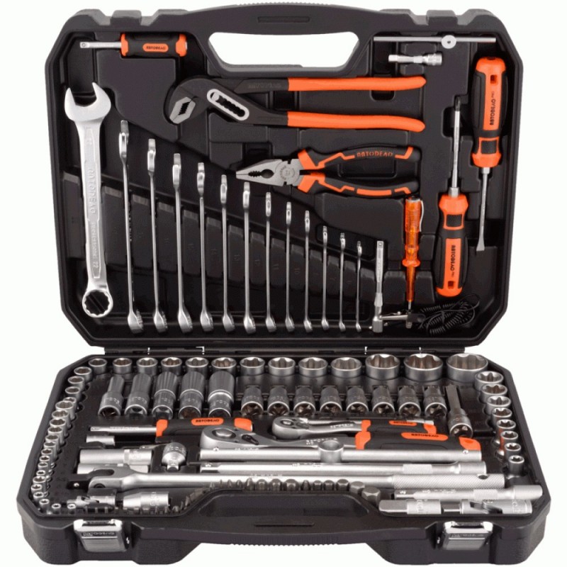 Комплектация набора оптимизирована для применения как на станциях технического обслуживания, так и в гараже. Пожизненная гарантия (до полного физического износа). Набор укомплектован головками торцевыми и ключами с присоединительным квадратом 1/4" и 1/2". Торцевые головки с рабочим профилем Super Lock для надёжного захвата крепежа, особенно деформированного. В комплектации набора использованы комбинированные ключи повышенной точности, изготовленные методом холодной штамповки. Инструмент закалён до твёрдости не менее 39 HRC, износостойкий, пригоден для долговременного использования при максимальных нагрузках. Упаковка - усиленный пластиковый кейс с металлическими замками и петлями с металлическими осями.Комплектация набора Инструмент с присоединительным квадратом 1/4" (6,4 мм)Головка торцевая шестигранная 1/4" 5, 6, 7, 8, 9, 10, 11, 12, 13, 5,5 мм Ключ трещоточный 150 мм Вороток Т-образный 110 мм Удлинитель прямой 100, 50 мм Удлинитель гибкий 150 мм Кардан шарнирный 39 мм Рукоятка-удлинитель 1/4" 100, 150 мм Адаптер для шуруповёрта 30 мм Адаптер для вставок 25 ммИнструмент с присоединительным квадратом 1/2" (12,5 мм)Головка торцевая Super Lock 1/2" 8, 10, 11, 12, 13, 14, 15, 16, 17, 18, 19, 21, 22, 24, 27, 30, 32 мм Головка торцевая Torx® 1/2" Е11, Е12, Е14, Е16, Е18, Е20, Е24, Е22 Головка торцевая со вставкой Torx® 1/2" Т10, Т15, Т20, Т25, Т27, Т30, Т40, Т45 Головка торцевая со вставкой Torx® 1/2" T55 Головка торцевая высокая Super Lock 1/2" 10, 13, 15, 17, 19 мм Головка торцевая высокая свечная 1/2" 16, 21 мм Ключ трещоточный 250 мм Вороток Т-образный 250 мм Вороток шарнирный 375 мм Удлинитель прямой 125, 250 мм Кардан шарнирный 75 мм Адаптер для вставок 1/2"-5/16" Головка переходная 1/2"-3/4", 1/2"-3/8"Слесарно-монтажный инструментКлюч комбинированный 6x6, 7x7, 8x8, 10x10, 11x11, 12x12, 13x13, 14x14, 15x15, 16x16, 17x17, 19x19, 22x22 мм Пассатижи комбинированные 180 мм Пассатижи переставные 250 мм Отвёртка крестовая профессиональная PH2x100 мм Отвёртка шлицевая профессиональная SL6,5x100 мм Пробник автомобильный пластиковый6 - 24 ВВставки-биты 1/4"Вставка-бита Torx® 1/4" Т8 Вставка-бита шестигранник 1/4" 2, 3, 4, 5, 6, 1,5, 2,5 мм Вставка-бита крестовая Phillips 1/4" РН0, РН1, РН2, РН3 Вставка-бита крестовая Pozidrive 1/4" PZ1, PZ2, PZ3 Вставка-бита шлицевая 1/4" SL3, SL4, SL5.5, SL7 ммВставки-биты 5/16"Вставка-бита Torx® 5/16" Т50, Т55, Т60 Вставка-бита шестигранник 5/16" 7, 8, 10, 12, 14 мм Вставка-бита крестовая Phillips 5/16" РН4 Вставка-бита крестовая Pozidrive 5/16" PZ4