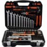 Комплектация набора оптимизирована для применения как в автомобиле, так и в гараже. Набор укомплектован головками торцевыми и ключами с присоединительным квадратом 1/4" и 1/2". Торцевые головки с рабочим профилем Super Lock для надёжного захвата крепежа, особенно деформированного. В комплектации набора использованы комбинированные ключи повышенной точности, изготовленные методом холодной штамповки. Инструмент закалён до твёрдости не менее 39 HRC, износостойкий, пригоден для долговременного использования при максимальных нагрузках. Упаковка - усиленный пластиковый кейс с металлическими замками и петлями с металлическими осями.Комплектация набораИнструмент с присоединительным квадратом 1/4" (6,4 мм)Головка торцевая шестигранная 1/4" 5, 6, 7, 8, 9, 10, 11, 12, 13, 5,5 мм Ключ трещоточный 150 мм Вороток Т-образный 110 мм Удлинитель прямой 100 мм Кардан шарнирный 39 мм Рукоятка-удлинитель 1/4" 150 мм Адаптер для шуруповёрта 30 мм Адаптер для вставок 25 ммИнструмент с присоединительным квадратом 1/2" (12,5 мм)Головка торцевая Super Lock 1/2" 8, 10, 11, 12, 13, 14, 15, 16, 17, 18, 19, 21, 22, 24, 27, 30, 32 мм Головка торцевая высокая свечная 1/2" 16, 21 мм Ключ трещоточный 250 мм Вороток шарнирный 375 мм Удлинитель прямой 125, 250 мм Кардан шарнирный 75 мм Головка переходная с отверстием 3/8"-1/2" Адаптер для вставок 1/2"-5/16"Слесарно-монтажный инструментКлюч комбинированный 6x6, 7x7, 8x8, 10x10, 11x11, 12x12, 13x13, 14x14, 15x15, 16x16, 17x17, 19x19 мм Пассатижи комбинированные 180 мм Пассатижи переставные 250 мм Отвёртка крестовая профессиональная PH2x38 мм Отвёртка крестовая профессиональная PH2x100 мм Отвёртка шлицевая профессиональная SL6,5x38 мм Отвёртка шлицевая профессиональная SL6,5x100 мм Пробник автомобильный пластиковый 6 - 24 ВВставки-биты 1/4"Вставка-бита Torx® 1/4" Т8, Т10, Т15, Т20, Т25, Т27, Т30 Вставка-бита шестигранник 1/4" 2, 3, 4, 5, 6, 1,5, 2,5, 7 мм Вставка-бита крестовая Phillips 1/4" РН1, РН2, РН3 Вставка-бита крестовая Pozidrive 1/4" PZ1, PZ2, PZ3 Вставка-бита шлицевая 1/4" SL3, SL4, SL5.5, SL7 ммВставки-биты 5/16"Вставка-бита Torx® 5/16" Т40, Т45, Т50, Т55, Т60 Вставка-бита шестигранник 5/16" 8, 10, 12, 14 мм Вставка-бита крестовая Phillips 5/16" РН4 Вставка-бита крестовая Pozidrive 5/16" PZ4