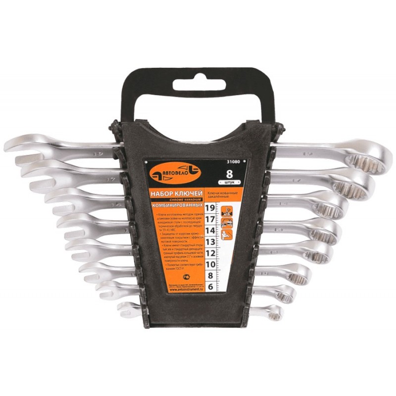 Набор комбинированных ключей 8 предметов (6-19) АвтоДело 31080