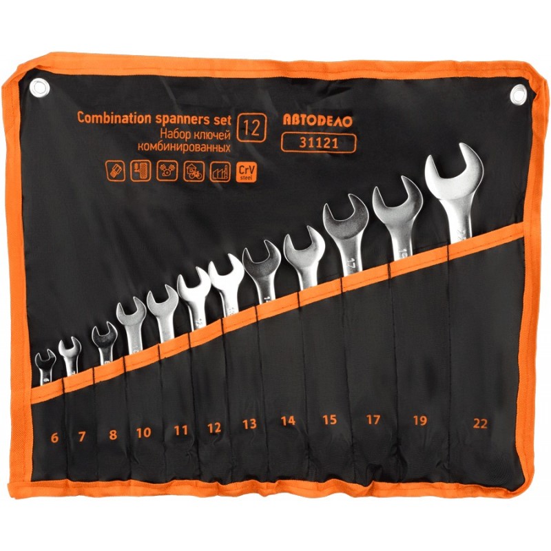 Набор комбинированных ключей 12 предметов (6-22) в сумке АвтоДело 31121