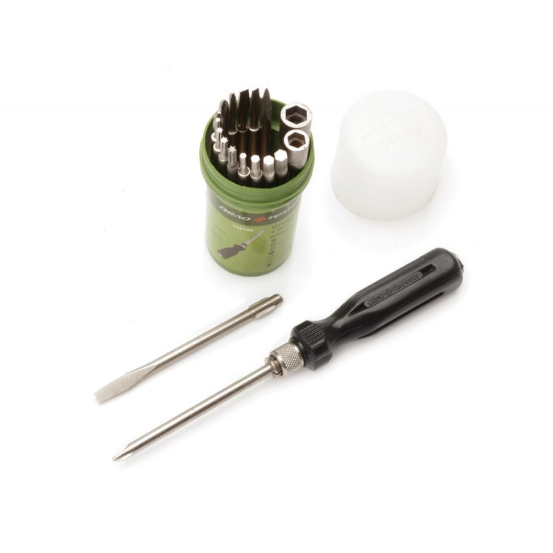 Отвертка цанговая с вставками 18 шт 110 мм Шлиц 6,5,3 мм, РН0, РН1,РН2, PZ2, Шило, Шест Дело Техники