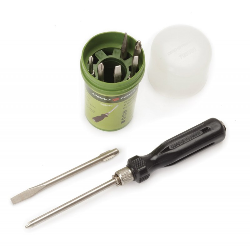 Отвертка цанговая с вставками 8 шт 110 мм Шлиц 6,5,3 мм, РН0, РН1,РН2, PZ2, шило Дело Техники